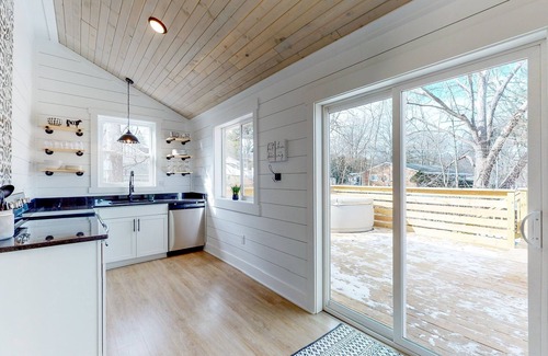 Step outside to your private oasis: a spacious deck with a luxurious hot tub, perfect for soaking under the stars and rejuvenating after a day of adventure.
