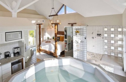 Amenities/Hot Tub: The Amenities are solely for the use of the registered Guest(s). One to two visitors are allowed with pre-approval from the Host. In no case will any un-registered visitors stay overnight in the unit without prior written approval of the Host. Any approved additional overnight guest shall be subject to an additional daily overnight stay fee of $100 per person. All amenities including but not limited to the hot tub, loft area and balconies are to be used correctly. Please reference the two tutorial videos on how to operate the hot tub as well as some extra safety precautions. There is no jumping from the loft areas (especially into the hot tub). The temperature of the hot tub should not exceed 104 degrees F. Alcohol consumption is not allowed while in the hot tub. Use of hot tub is prohibited if Guest(s) have underlying health conditions including but not limited to diabetes, heart failure, blood clotting, stroke, thyroid failure etc. Do not use the hot tub if you are pregnant or trying to become pregnant, unless otherwise directed by your Doctor. Do not sleep in the hot tub.