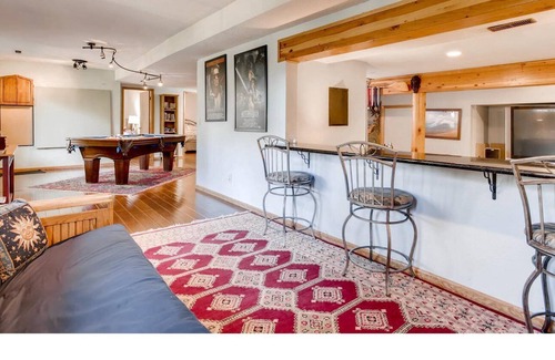 The lower level features it's own separate entrance, a spacious deck with spa,and putting green with a schipping area a great/game room with a pool table and ping pong, dart board, gas fireplace, a home theater room w/ 100" screen and audiophile quality sound system featuring Triad THX speakers. Adjacent is a kitchenette and Tiki bar with mini fridge, microwave, coffee maker and toaster.
