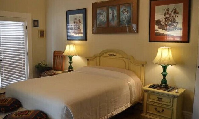 Beautiful suite with its' own private entrance that leads into the beautiful courtyard. Comfortable porch and a two minute walk to Downtown!!