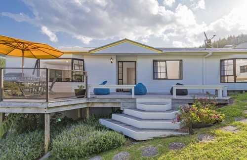 This fully-renovated, gorgeous 3-bedroom holiday home sits just 3-minutes out from the beach featuring a spacious deck overlooking the ocean, a beautiful polished interior that's complemented by a light-hearted combination of blues and yellows, which creates an inviting and warm atmosphere.
