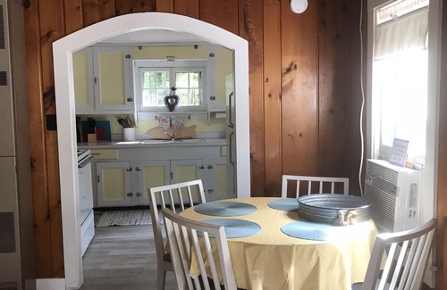 This listing is for 1 (#114 Ruth) of the 2 charming Twin Cottages! They sit on private property with 55 feet of sandy lake frontage with a private dock and boat anchors. The 2 bedroom, 1 bath cottages have been freshened up from top to bottom. Ruth has 1 Queen bedroom & 1 Full/Full bunk bedroom (plus a queen sofa bed in the living room). Paper products and all linens are supplied. You will just need to bring your beach towels. Ceiling fans in both bedrooms and in the living-room - Wifi - Smart TV with Cable - 2 Fire pits are shared between the 2 cottages.