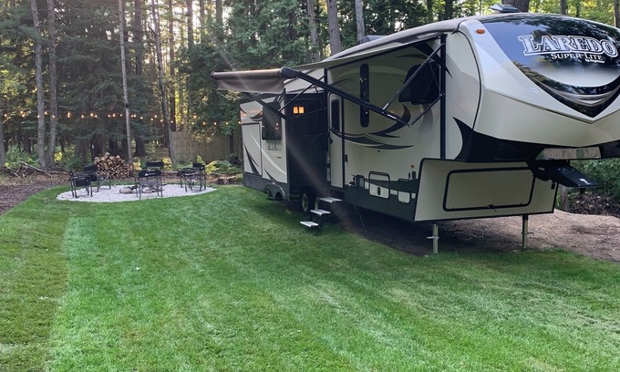 Come stay in a comfortable 5th Wheel Camper on a road just outside the city limits. The Property is wooded like you are out of town, but you are not that far. The Up North Experience is just off of an ORV trail; which means easy access! Go a short way into town for gas, hit the trail and go. No need to trailer your ATV/ORV into town. There are hundreds of miles of trails that you could enjoy, and parking available close to the 5th Wheel Camper. The property is an easy walk or bike ride into town.
