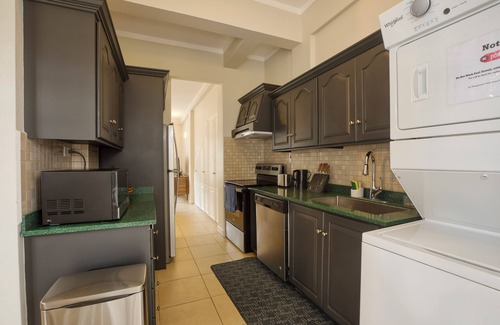 It is fully equipped with stainless-steel cooking appliances that make it suitable for preparing any meal, whether a simple breakfast, quick snack or a three-course gourmet dinner. Spacious quartz countertops provide plenty of room to work your MasterChef magic.