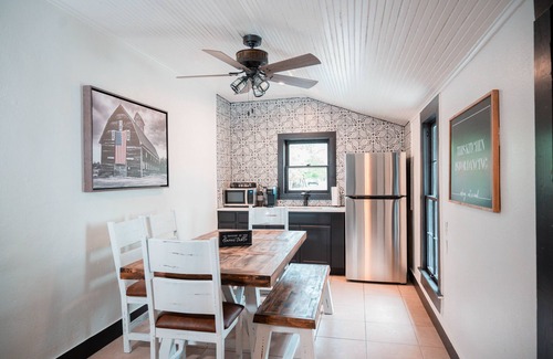 Century old farmhouse, but with modern day touches, all within walking distance to restaurants, shopping and nightlife. When you arrive to Bandera and this Farmhouse, you will experience a feeling of going back in Texas history, and experience what it would be like to be a modern day cowboy, but with all the luxuries and comforts of a boutique motel. This Farmhouse Suite checks all the boxes while in Bandera. You can walk to all the shops and restaurants the town as to offer during the day, and relax by your fire pit in the evenings. With lots of space inside, oversize couches, king size bed, modern bathroom amenities, and full size kitchen with Keurig, this farmhouse has everything you need to relax while in Bandera.