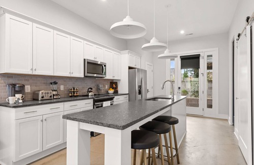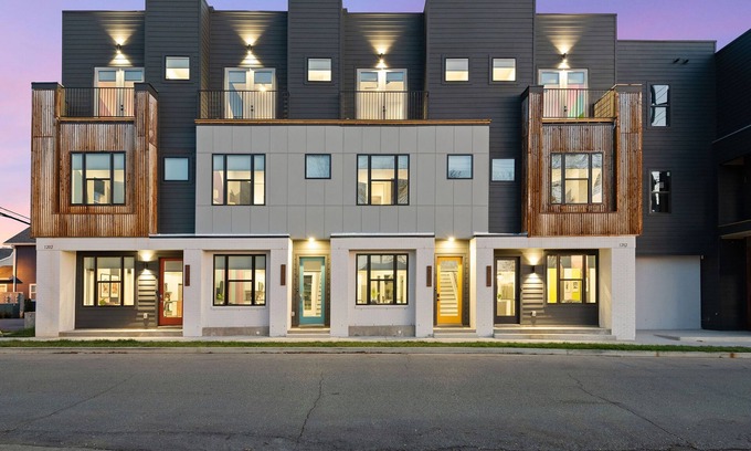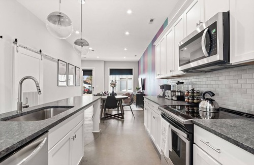 **Entire 4 Unit Building** Up to 40 guests, 16 bedrooms, 24 beds and 14 bathrooms. Welcome to The Venue, a musically inspired Building situated in the Historic Nations neighborhood. This collection of 4 attached homes pays homage to the various elements that make up the rich multi-faceted music industry in Nashville. This building was professionally designed to exclusively welcome guests to Nashville. Bold paint & music accents make the perfect backdrop for Music City memories! *Private 4 units no shared inside spaced and parking available.