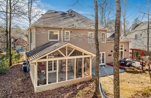 Take it easy at this unique and Welcome to your serene retreat in the heart of Johns Creek! This FULLY FURNISHED, spacious and beautifully updated home offers everything you need for a memorable stay, starting with a spectacular screened porch overlooking a lush backyard oasis, perfect for morning coffee or evening relaxation. Enjoy the comforts of a modern kitchen. Whether it's unwinding indoors or exploring the local charm, this home ensures a unique and comfortable stay.