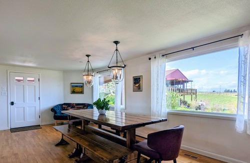 To wow your guests, prepare your favorite meal in the well-stocked kitchen, or we can help coordinate an in-home chef to serve a professional dinner. Surrounded by vineyards, and wineries, and not far from the quaint little towns that make up Oregon Wine Country, you couldn’t find a better location for your Willamette Valley getaway. We look forward to hosting you! Note: Due to the countryside location of this property depending on your cellular provider, cellular service may be spotty. We apologize for the potential inconvenience, it's just the nature of the location of the property itself. Ready to explore? Considering a private driver? May we suggest our preferred partner in the area - Pinot Car?