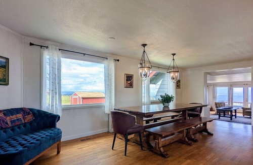 When you venture back inside the home you can cozy up in the living room and soak in the exclusive views out of the large picture windows, or have a meal with loved ones at the farmhouse dining table. As you enter the home under the covered porch you will see the kitchen to your right and the dining room in front of you with plenty of seating for everyone to gather. Continuing through the home, you will find yourself in a cozy living room with views you can enjoy year-round, rain or shine. The living room features a 40-inch flat-screen TV with Netflix and Pandora provided along with lots of books and board games for in-home entertainment. Note: The fireplace is temporarily suspended, and will be receiving an upgrade coming soon!