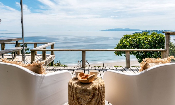 This gorgeous beach styled property is on one level and sits on the highly desirable north side of the island, with spectacular views over Onetangi Bay which is known for its safe swimming, paddle boarding or kayaking.