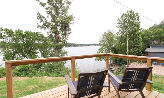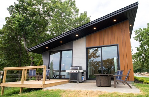 Our name says it all.. The VIEW on Grand. For the discerning traveler with high-end comfort in mind. Six midcentury modern cabins right on the waters edge just outside Grove, Ok. A perfect location to relax and enjoy the open water view from your deck. Perfect Unobstructed lake views from every room. Deep water for fishing right outside the cabin at the shore (locals frequent this gem of a fishing hole). Walk or drive across Honey Creek Bridge to local restaurants, Honey Creek Landing Marina, and the upcoming Grand River Dam Authority park. We set the gold standard for cleanliness, luxury, and comfort.