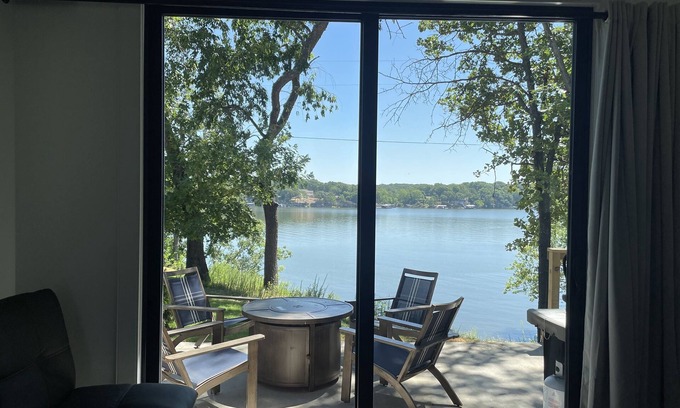 Our name says it all.. The VIEW on Grand. For the discerning traveler with high-end comfort in mind. Six midcentury modern cabins right on the waters edge just outside Grove, Ok. A perfect location to relax and enjoy the open water view from your deck. Perfect Unobstructed lake views from every room. Deep water for fishing right outside the cabin at the shore (locals frequent this gem of a fishing hole). Walk or drive across Honey Creek Bridge to local restaurants, Honey Creek Landing Marina, and the upcoming Grand River Dam Authority park. We set the gold standard for cleanliness, luxury, and comfort. *Pets are not permitted at this location. If you would like to bring a pet please see our sister site careybaycottages.com.