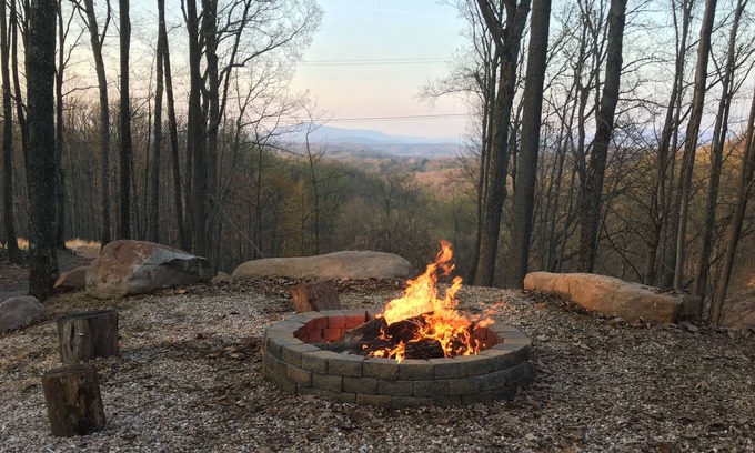 Our cabin hosts a kitchen, living area, master bedroom, bunk room, bathroom with an additional “little house” for extra sleeping comfort on 5 acres on the top of a mountain next to the Sleepy Creek Wildlife Area 7 miles from Berkeley Springs. Get away from life’s daily drama to a captivating and beautiful place. You have a cell phone signal, but no cable tv, bring your dvd's. This place is all about being with nature! Enjoy a fire pit, corn hole, horseshoes, and a hammock onsite!
