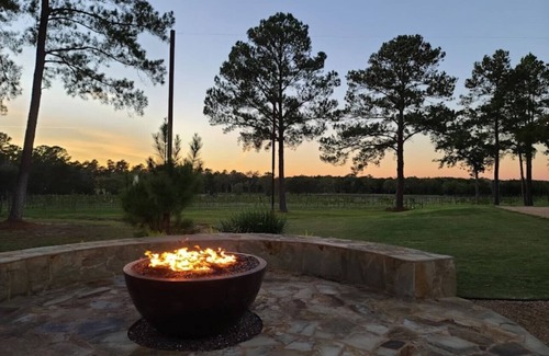Experience the rustic charm of this spacious 3-bedroom, 2-bath barndominium, located near the renowned town of Round Top, with Texas cowboy-style decor and beds for up to 10 guests. Spread across two floors, the barndo offers an expansive open concept living space with a fully equipped kitchen, island with stools, dining table, huge sectional couch, and massive TV. Whether you’re here for a wedding or a vineyard weekend getaway, this stylish barndo offers the perfect blend of comfort and rustic flair, all on a beautiful vineyard setting. Step outside to enjoy a game of horseshoes/cornhole, take a stroll through our vineyard, enjoy stand-up paddle boards or hanging on our private dock on Brunwine Pond, or just relax under the big Texas sky in a tranquil setting overlooking our vineyard.