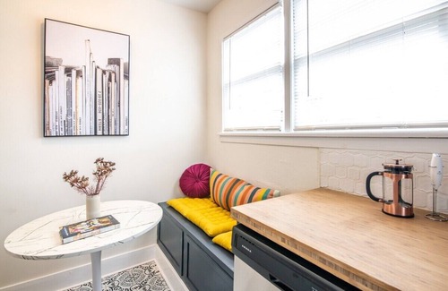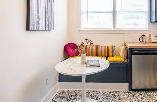 Enjoy a uniquely designed getaway in the beautiful, historic neighborhood 5 Five Points South. The Vinyl is a charming little home that will create a relaxing and inspiring stay. Enjoy a cup of coffee at the adorable coffee nook in the kitchen. Upstairs unit in a duplex with private entrance.