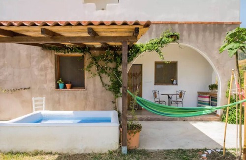 Loft house located in a beautiful place surrounded by mountains and overlooking the sea in the background. The house is cozy and is provided with everything necessary to spend a season. Composed by bedroom for two people, dining room - very bright and pleasant living room, kitchen with everything you need and service with very large shower. It also has a small pool of soda and a porch from which to enjoy the views. 8 km away from the beach and the town of Almuñecar, it is ideal for couples looking for a quiet place to disconnect. Access to the house is through a winding road that has good firm.