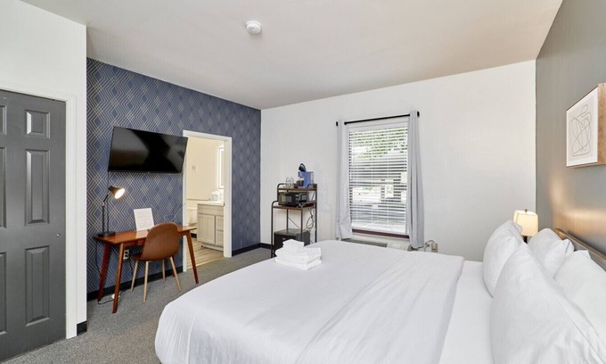 The West End Hotel King bed by Cortex, Forest Park & BJC is located in Central West End. The West End Hotel King bed by Cortex, Forest Park & BJC provides accommodation, featuring Barbecue/Outdoor Cooking, Air Conditioner, Parking, among other amenities. This Hotel features Barbecue/Outdoor Cooking, Air Conditioner, Parking, to make your stay a comfortable one.