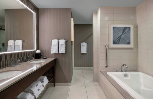 Recreational amenities at the hotel include an outdoor pool and a 24-hour health club.