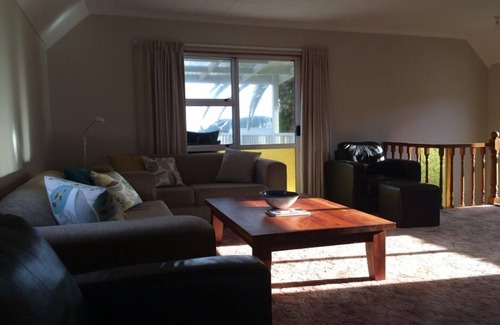 The White House is a very comfortable and fully furnished holiday home ideal for families. There are two lounges, one with a sofa bed. Two Bathrooms, a fully equipped kitchen and 2 balconies to enjoy all day sun and views to bush, beach and Golden Bay. Large private lawn sheltered by well established trees.