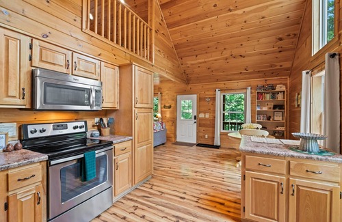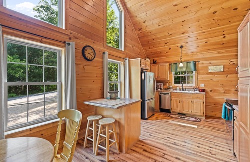 Managed by the owners and not a property manager (so you get personalized attention), this absolutely romantic and luxurious cabin is PERFECT FOR COUPLES! Impeccably clean, private, and well stocked home features all pine interior construction with cathedral ceilings, a generous sized kitchen w/stainless appliances, cozy living room with fireplace, kitchen island as well as table for dining, upstairs bedroom outfitted w/luxe Egyptian cotton linens, private hot tub under the stars, rear deck with Weber grill and dining table, outdoor fire pit, wifi, laundry room and more. Guests only need to bring their clothes, toiletries & groceries as your Hosts have provided everything else. Come relax and enjoy the mountains!