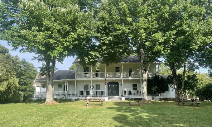A southern farmstead in American charm. A spacious home nestled on 30 acres in the north Georgia mountains, that's assured to provide an escape to peace and tranquility. Our two story porches have expansive views of the front pastures, pond, mountains, and sunset. Downstairs basement has not only a pool table for your enjoyment, but also a mounted projector for your movie watching pleasure. Large and small fire pits, depending on your comfort level. Additional amenities include modest library, extra sitting room with TV and Wii gaming system, abundant wildlife, and more stars than you can count.
