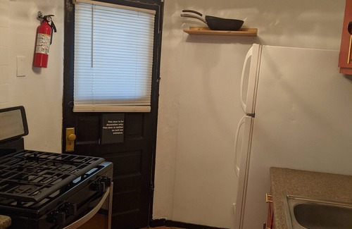 Basement laundry washer and dryer are each $1.50 in quarters and shared with the 3 other building tenants. Backyard parking, washer/dryer, & common hallway are shared by 3 other tenants in the same building. The other 3 tenants may be lively as they come and go in the no-smoking 4-unit building. Parking is on street level or in the backyard.