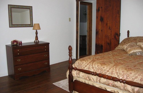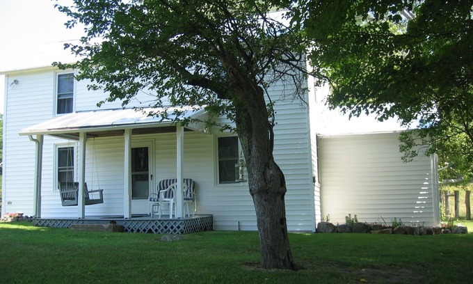 The Wilson House offers the perfect escape! Guests, whether enjoying breakfast on the deck, dinner by the backyard campfire or hiking the trail behind the house, are surrounded by the beauty of trees, grass, flowers and wildlife. Although this home has been renovated, many original features have been preserved and will carry guests back in time. Several antique furniture items are incorporated in the decor; farm buildings and a few equipment pieces are nearby. Numerous guests have referred to this house as "charming."