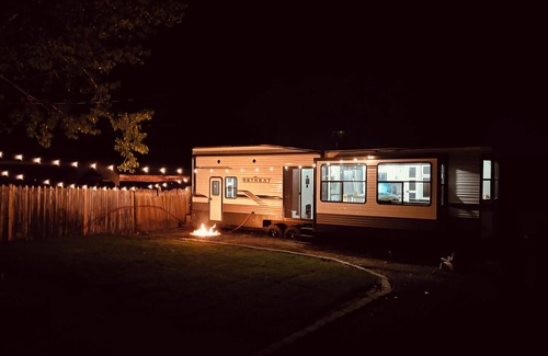 Tucked by the Yakima River in downtown Prosser, this cozy two-story RV offers a peaceful escape, just steps from The Prosser House Eatery & Pub. Sleep easy with a memory foam king bed, two memory foam twin beds, and a full couch pullout. Cook, unwind by the fireplace, stream your favorites with Wi-Fi and Smart TV, or gather around the fire pit under the stars. Private entrance and parking make it all yours to enjoy. This RV is where our family lived for a year while we beautifully restored the interior of our historic 1904 home. Now settled into the main house as we enhance the exterior, we’re excited to share this spacious RV, fully equipped for your family’s comfortable and memorable getaway!