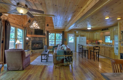 This cabin is located inside The Talking Rock community and has a bunch ofamenities such as a lodge on a beautiful river where you can swim, fish, or float down the river on a raft! There are also2 pools, abasketball court, picnic areas,and a kids play area that adds to the list of activities you can do while your at The Wolf Den cabin!