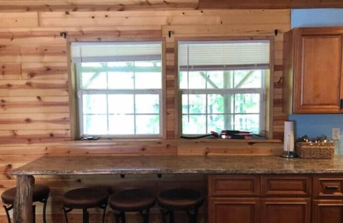 The cabin, driveway, and yard are nestled in the trees. You’ll be sure to see lots of deer, squirrels, rabbits, and birds with the sounds of the lake in the background.