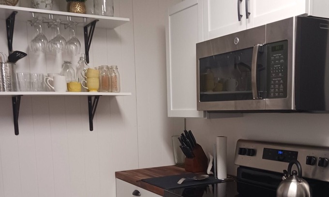 The remodeled cabin is quaint with a chef's kitchen. There's room for 5 guests to sleep comfortably and offers nice amenities throughout. The space is calming, chic and well thought out to ensure guests have an enjoyable stay. The cabin is located just 3 minutes walking distance to Higgins Lake at Maplehurst Dock.