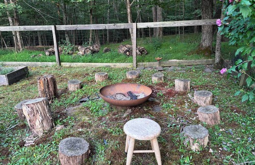 There is a backyard with a playground and trampoline as well, for people who have children. Small campfires are permitted, either in the area in front of the trailer or in the nearby garden area.