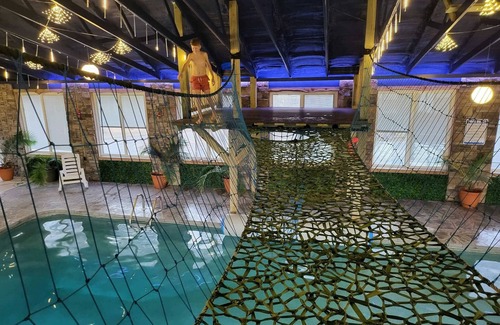 The Yurt is located in Paradise Pointe, a gated mountain retreat at the tri-state corner of AL/TN/GA. Hike the trail to stand in three states at once! Enjoy access to the huge indoor pool house with a communal hot tub, two indoor slides, an outdoor deck, seating, and more. All 19 rentals share these amenities. Plus, enjoy two small basketball courts, sand volleyball, horseshoes, and more for endless fun!