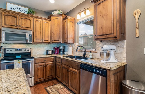 Extra features include a GAS GRILL on the lower patio, with propane provided! We also have a full-size WASHER AND DRYER on the main level and we provide the detergent! Each bathroom comes stocked with full-size soap, shampoo, and conditioner to make packing that much easier!! The master closet is stocked with several towels for the pool, a pack-n-play and high chair for your little one as well as a baby gate, and extra toys for outside and the pool!