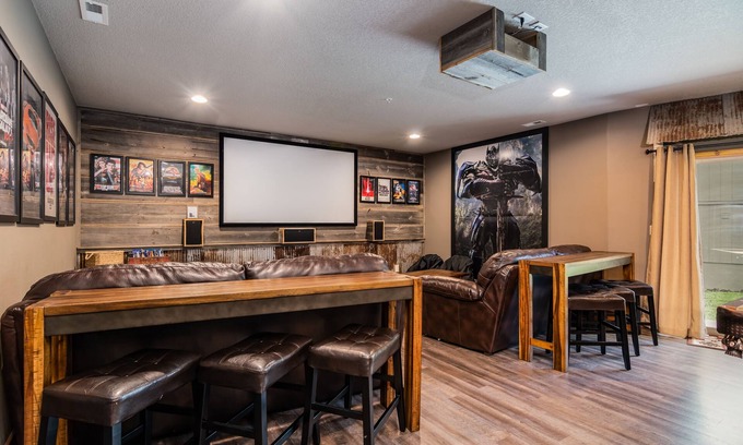 Welcome to LUMBERJACK LODGE! This home offers everything you would need for the BEST BRANSON VACATION! With 7 bedrooms and 3 living areas, there is plenty of room for everyone to spread out! The basement game room is definitely a favorite featuring a 100" projector screen, a competition ready pool table, and some of the coolest decor you've seen in a rental! We are also conveniently located within WALKING DISTANCE TO THE POOL and just 15 MINUTES SOUTH OF BRANSON! We are away from all the busyness but close enough for easy access to all the fun attractions that Branson has to offer!