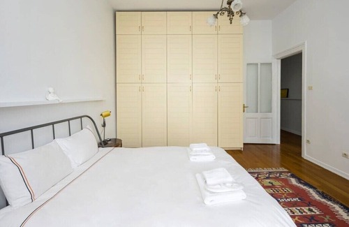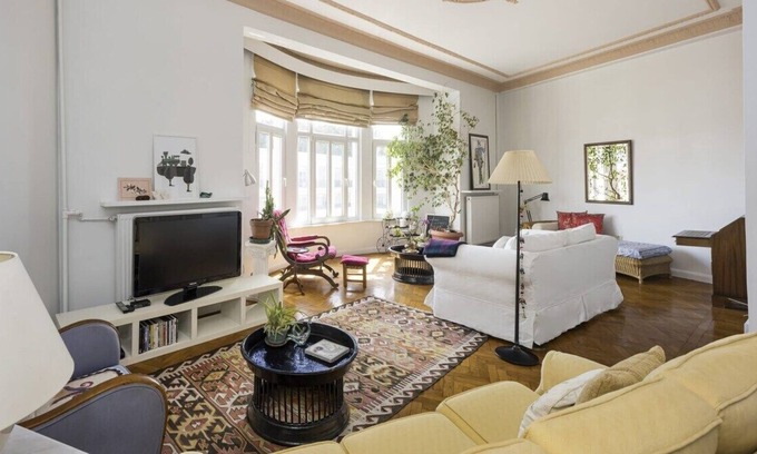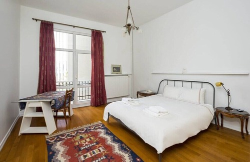 Welcome to our bright spacious high ceiling historic gem of a home with stunning views of the Bosphorus! With a large living room and dining area, guests will feel comfortable in this spacious home. Comes with a fully equipped kitchen and a designated office room. With two bedrooms (queen size beds) and two balconies plus 1.5 bathrooms. Located on the 4th floor with an elevator. Comes with A/C, Wifi + netflix! The perfect home away from home for all guests to enjoy!