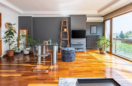 This beautiful bright home is situated on a quiet street in Bebek seconds from the beautiful Bosphorus! This cozy 2 bedroom, 1 bathroom pad comfortably fits 5 guests and has stunning views of the Bosphorus. Situated on the 3rd floor (walk-up). A fully equipped open kitchen and a large open space living room/dining area. This apartment boasts lots of natural light and is the perfect home away from home! Comes w/ Wifi and Netflix.