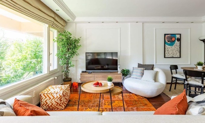 Welcome to our scenic peaceful home surrounded by nature right across the gorgeous green Emirgan Park! Enjoy a private outdoor patio. Our bright newly designed 2 bedroom, 1 bathroom home is situated close to the Bosphorus shore line. With a fully equipped open kitchen and a cute dining area. This home is the perfect place to call home away from home. Comes w/ AC/Wifi/Netflix!