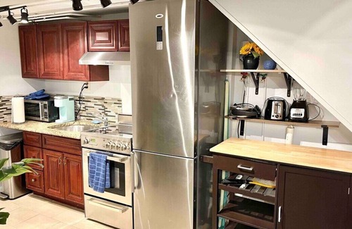 You have a private and exclusive access to the entire apartment. Make your self at home. You have your own private entrance. Must go down 5 steps.