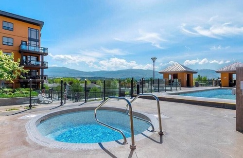If you're looking to take a dip in the onsite pool or soak in the hot tub - you will love the stunning mountain views and the resort vibe right in the heart of Kelowna.