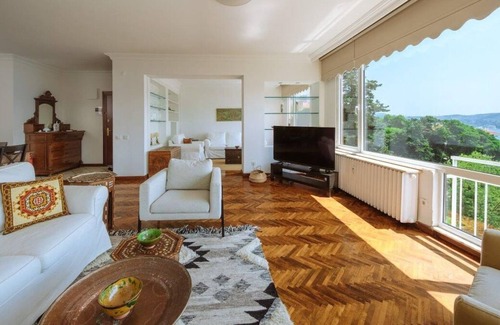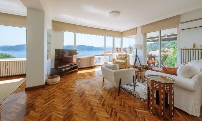 A bright spacious central gem unique home in the heart of Bebek with stunning Bosphorus views! This 3 bed 1.5 bath home comfortably fits 6 guests. Enjoy the private balcony and outdoor terrace! Comes with a fully equipped kitchen, dining area and elegantly designed living room. This apartment boasts lots of natural light. The perfect home away from home! Comes with A/C + Wifi + Netflix! Situated on the 4th floor with an elevator.