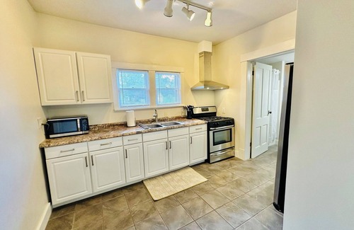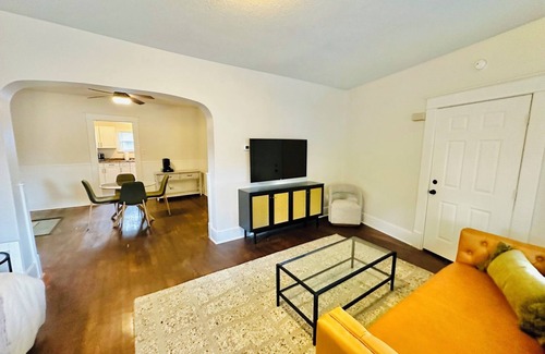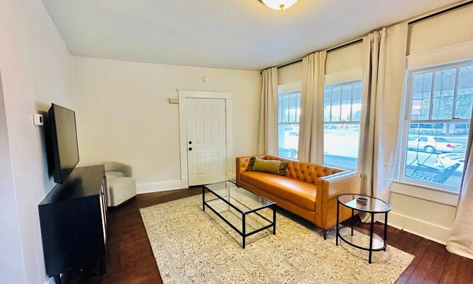 This apartment sits across the street from the school. Welcome to our cozy, centrally located one-bedroom apartment, perfect for travelers seeking comfort and convenience. Nestled near a diverse spread of popular dining, and shopping options. This quaint space offers everything you need for a relaxing stay. Step inside to find beautiful hardwood floors throughout, creating a warm and inviting atmosphere. Pets considered upon request.