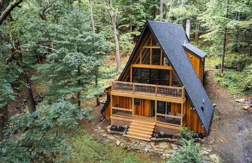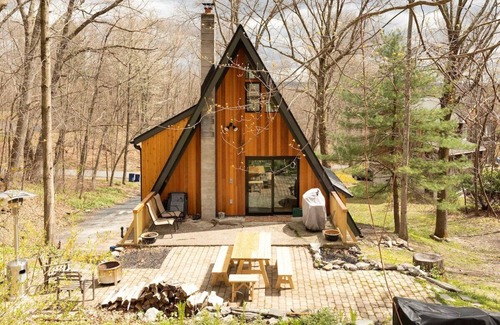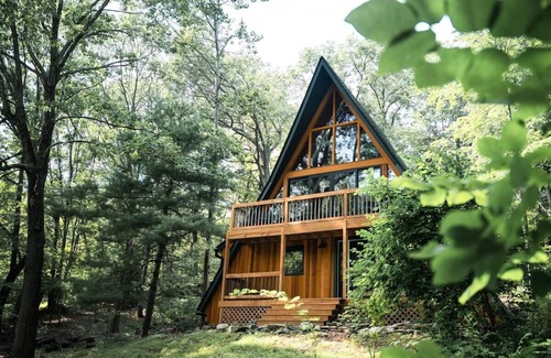 The Upstate A is a 3 bedroom + sleeping loft, 2.5 bathroom A-frame set on a quiet cul-de-sac in the heart of the Hudson Valley. Built in 1968, it was fully renovated in 2020-2021. Staying here you’ll experience a cozy yet modern vibe, immersed in nature but with all the accoutrements of an upscale stay. You'll find great hiking in the summer, skiing in the winter, fresh upstate air year-round and serenity all day and night.