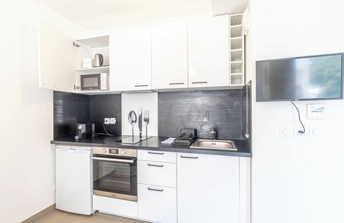Well thought out, this 23m2 apartment is composed of a living room with fully equipped kitchen, wifi, dining area, smart TV but is also equipped with a real bed and a sofa