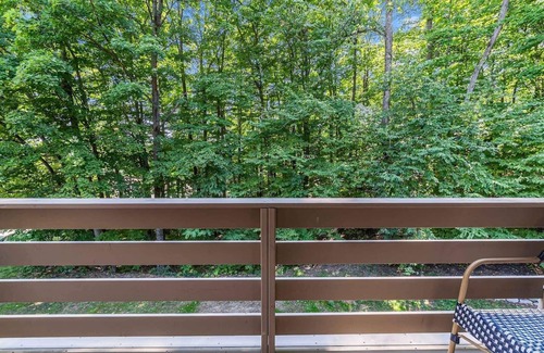 Are you looking for an adventurous and top notch vacation rental in Northern Michigan? Hideaway Valley condo 27 is a brand new construction unit nestled in the hills and valleys of the Hideaway Valley Condo Association in Harbor Springs. After a peaceful rest in your master bed (brand?), spend your mornings on the main level deck with brand new patio furniture enjoying a cup of coffee and listening to the birds in the tranquil woods. With enough space for everyone, you could even bring out a small breakfast/brunch outside as well. As you can see in the photos, this unit has been beautifully constructed with top of the line features. The kitchen is fully equipped with white and gold Café appliances, including double oven, dishwasher, coffee maker, convection microwave, and a multi compartment fridge. The two full bathrooms have been beautifully tiled, one being a full bathtub/shower, and the downstairs being a stand up shower- both with detachable shower heads.