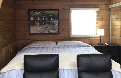 This cozy log cabin has a private entrance and convenient parking. The main floor includes an open kitchen and dining area. The kitchen is equipped with a small gas range, refrigerator, and cooking and dining basics. There is a comfy king size bed and a private bathroom. The loft has two cute twin beds and a large window with a view of the property. Our spacious accommodations are excellent for a trip with friends, family or as a couple. Each accommodation is fully equipped and furnished to create a pleasant and relaxing atmosphere.
