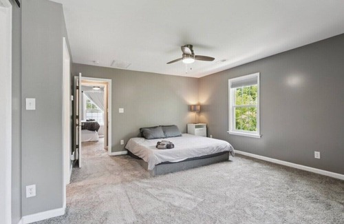 - Two large upstairs bedrooms: primary bedroom features a memory foam king bed, en suite luxury bathroom and a large walk in closet; second bedroom features a full trundle bed with a pull out twin mattress, a twin bed and a walk in closet
