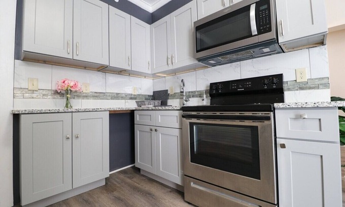 Broadways Balcony- the perfect location for your stay in Downtown Lexington! This second floor, 3 bedroom unit has plenty of space for friends & family to gather & make memories. Enjoy evenings on the balcony or in front of the electric fireplace watching your favorite movies. Take a 10 minute walk downtown to enjoy events at Rupp Arena or to find a delicious meal! The kitchen is fully stocked & linens are always fresh ensuring a comfortable stay. We cannot wait to host you! Book now!
