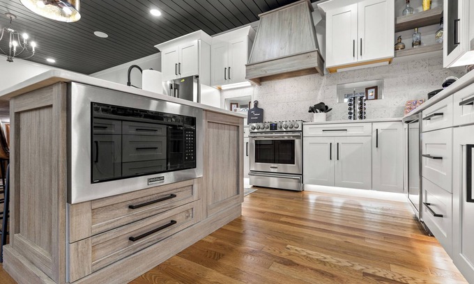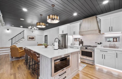 Guests will utilize our spacious island for dining. You can enjoy cooking in our newly renovated kitchen with quartz counters, brand NEW stainless appliances, and all the utensils needed to prepare your favorite dishes. We have well equipped our kitchen for all of your culinary needs.