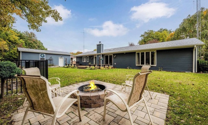 Immerse yourself in nature's tranquility at our charming getaway! With room for ten, 4 bedrooms, and ample comforts, it offers a blend of relaxation and adventure for families or friends. Drop a line in the lagoon (right in the backyard!), or make your way to Paw Paw lake for a day on the water. Nearest access is about a 3 minute walk to the fire lane- see photos!